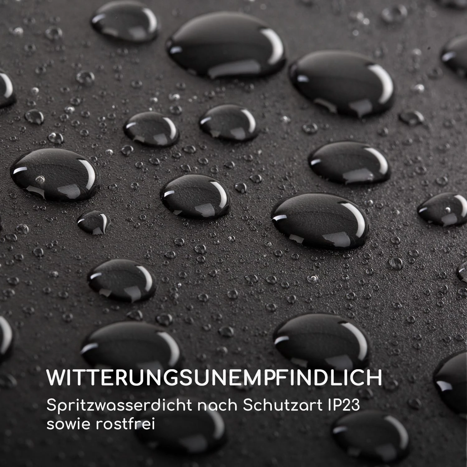 Die schicke Stehlampe ist im Handumdrehen installiert und aufgestellt. Im Innern steht eine Fassung für herkömmliche E27-Sockel bereit, die Leuchtmittel bis 60 Watt max. aufnehmen kann. Mit ihrer durchgehenden Lackierung, sowohl außen als auch im Lampenschirm, ist deine Lichtquelle ein echter Hingucker und verbreitet ein besonders angenehmes Licht. Der Lampenständer aus schwerem und solidem Metall ist rostfrei, witterungsunempfindlich und sorgt für einen sicheren Stand. Für die Sicherheit im Freien ist natürlich ebenfalls gesorgt: Mit der Schutzklasse IP23 ist die Big Benny gegen Spritzwasser geschützt.