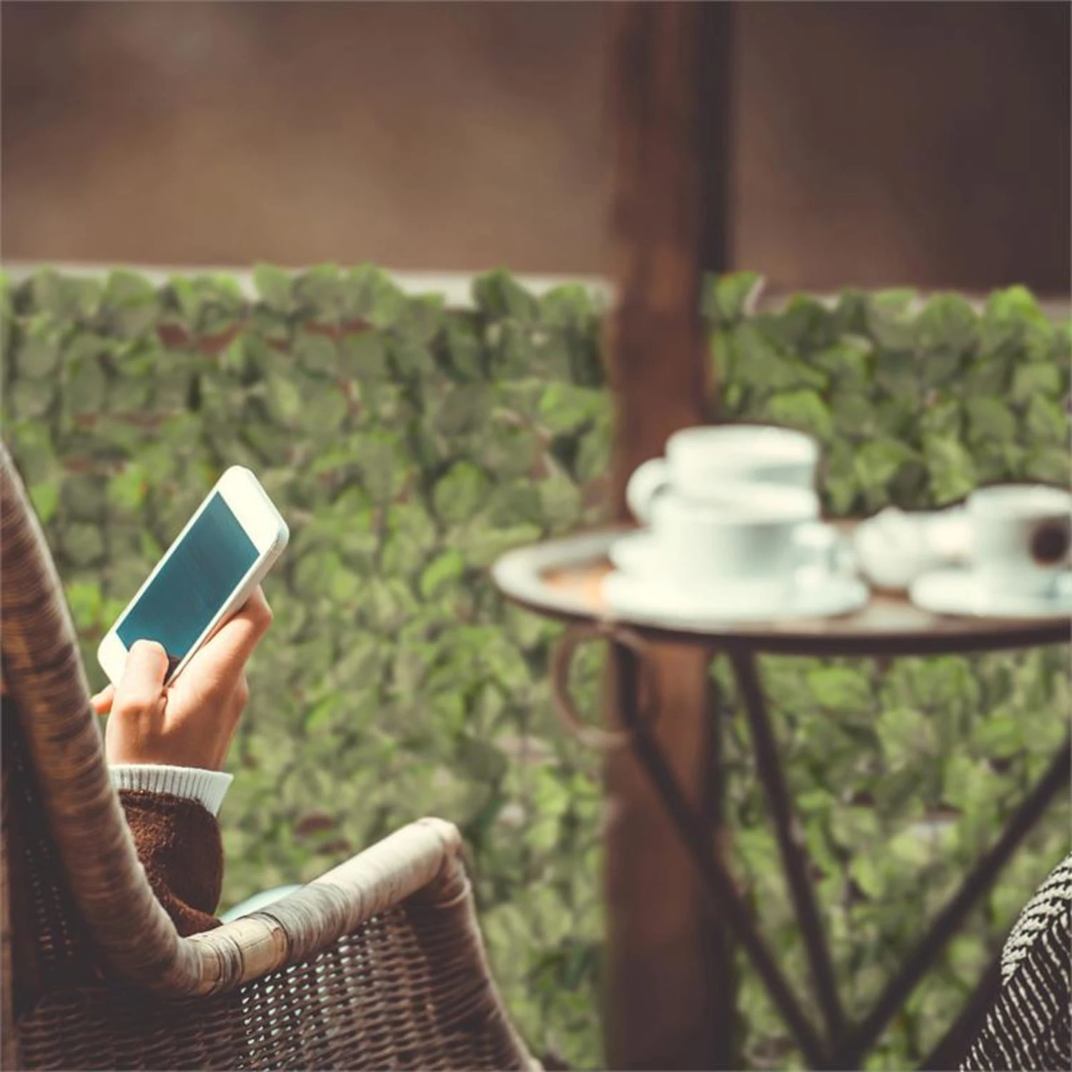 Schluss mit neugierigen Blicken! Der Blumfeldt Fency Bright Leaf Sichtschutzzaun verschafft wohltuende Privatsphäre in einem sommerlich frischen, grünen Blätterkleid auf Balkon, Terrasse und im Garten.