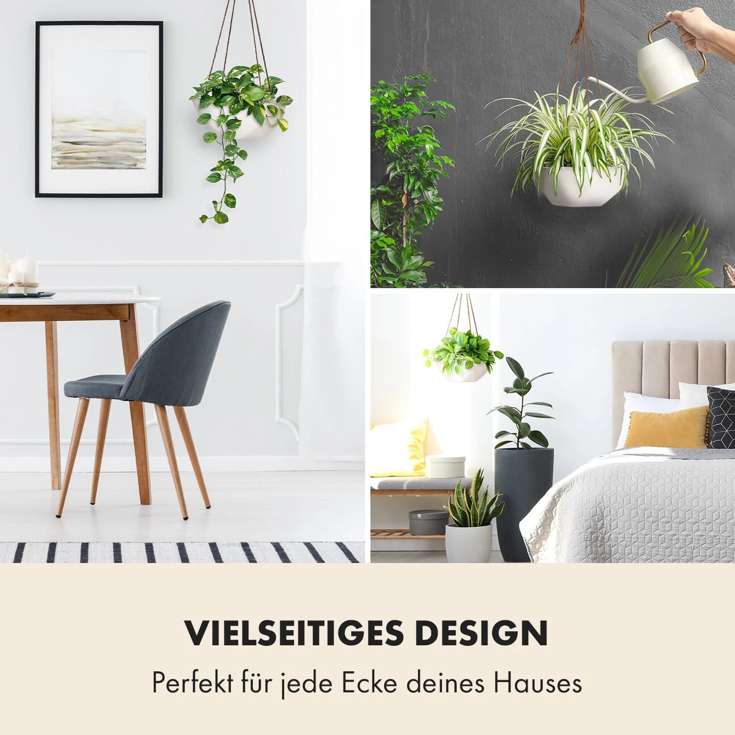 Schmücke dein Zuhause mit einer hängenden Blüten- und Pflanzenpracht: Die blumfeldt Laren Blumenampel ist ein moderner Hingucker, der jeder Zimmerpflanze ein besonders schönes Fleckchen zum Gedeihen schenkt. Hier trifft einzigartige Qualität aus echter Handarbeit auf natürliches Design mit matter Oberfläche und skandinavischem Flair. Die Schale setzt sich aus aneinander gereihten Fünfecken zusammen, wodurch eine moderne Optik mit lebendiger Oberflächenstruktur entsteht. Vier Naturseile sind an der Schale befestigt und tragen diese sicher. So kannst du die Blumenampel einfach an der Decke befestigen. Neben ihrer einmaligen Optik besticht die blumfeldt Blumenampel Laren auch durch ihre Qualität. Sie ist aus Polystone hergestellt, ein Materialgemisch, das hart wie Stein, jedoch um ein Vielfaches leichter ist. Die Kombination aus sorgfältiger Herstellung und der Verwendung des einzigartigen Materials machen die Blumenampel sehr robust und langlebig.