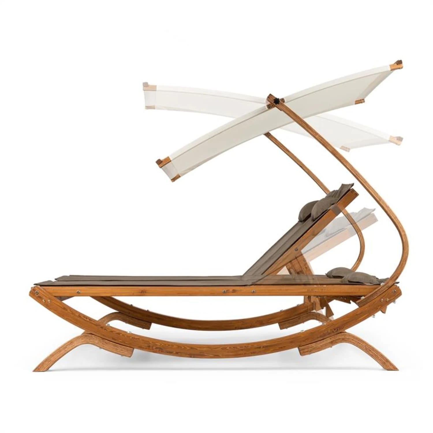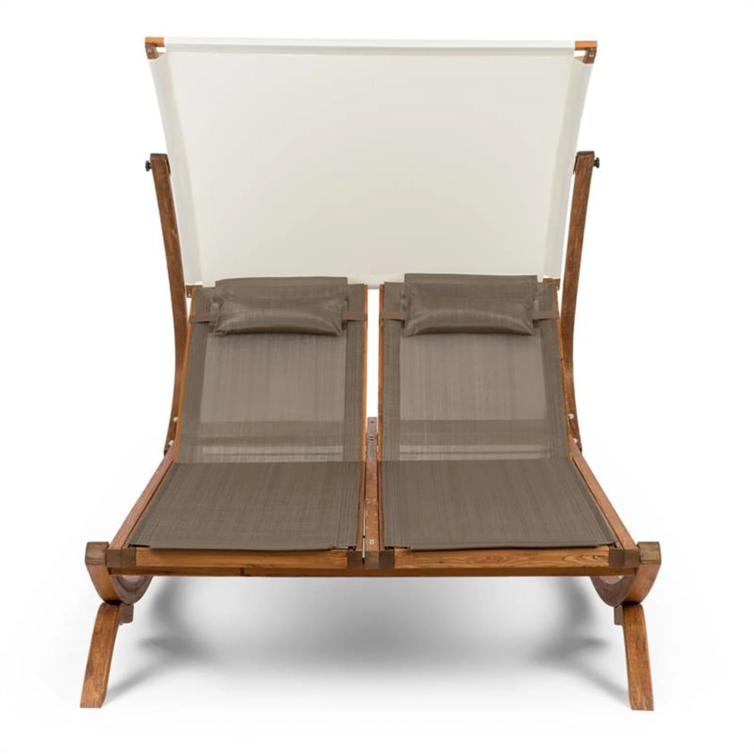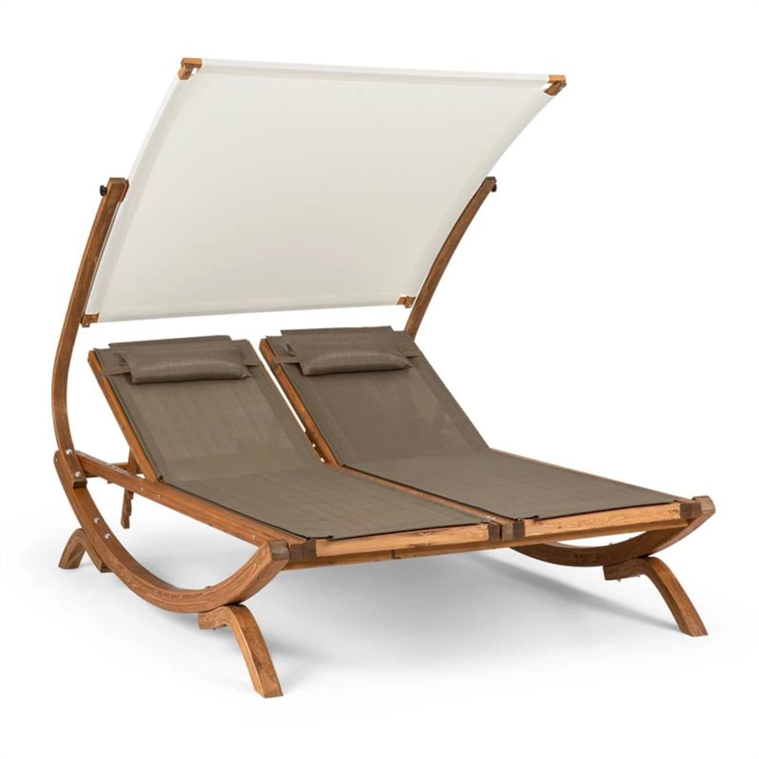 Sonnendeck Doppel-Sonnenliege Verstellbares Sonnendach Kopfkissen Weiß