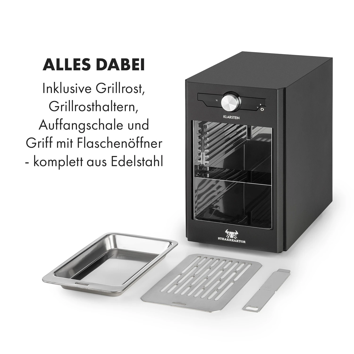 Der Klarstein Steakreaktor Core Hochtemperatur-Grill komplett im schwarzen Gehäuse und mit Innenleben aus Edelstahl – der cool-elegante Look, nicht nur für jede Küche!