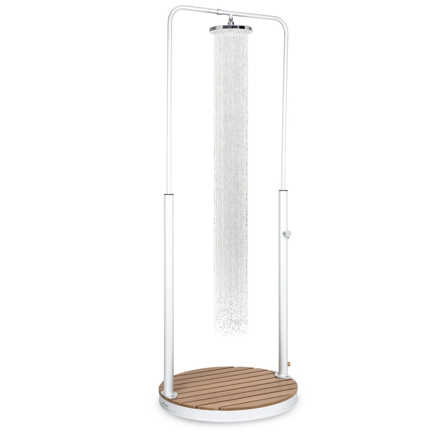 Dieses Jahr wird es ganz einfach im Garten einen kühlen Kopf zu bewahren. Dafür sorgt die blumfeldt Sumatra Falls Außendusche auf einfache und effektive Weise. Das kühle Erfrischungswunder wird einfach an den Gartenschlauch angeschlossen und schon kann der Spaß beginnen. Wasser aufgedreht und schon regnet das kühle Nass wie ein Wasserfall aus dem runden Duschkopf auf dich herab. Damit eignet sich die blumfeldt Sumatra Falls auch perfekt als Saunadusche – vor allem, da sie selbst in begrenzten Platzverhältnissen leicht einen Platz findet. Für langanhaltende Erfrischungsfreuden sorgt der clevere Mix aus robusten Materialien. Die Basis der Dusche ist aus eloxiertem Aluminium gefertigt und wird von einem rutschfesten Top aus WPC, Wood-Plastic-Composite, gekrönt. Das besteht nicht nur zu 60 % aus Holz und schont damit die natürlichen Ressourcen, es ist auch unempfindlich gegen Schimmel, Frost, Wasser und UV-Strahlung und lässt sich besonders einfach reinigen. Durch den unkomplizierten Auf- und Abbau lässt sich die Bogendusche im Winter platzsparend und frostsicher verstauen.